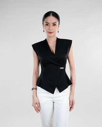 Sleeveless V neck wrap blouse
